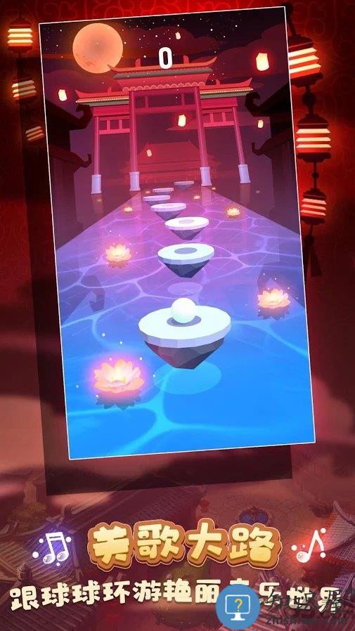 聆听音乐,控制球球跳动。不要小看游戏的难度,