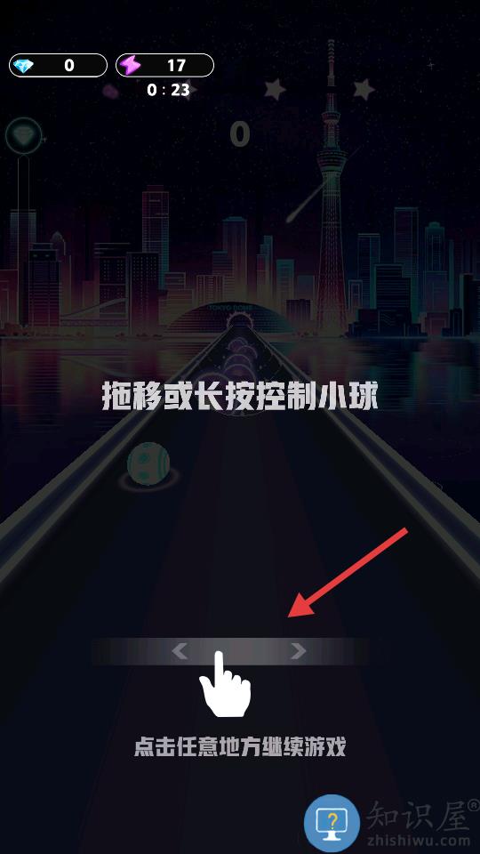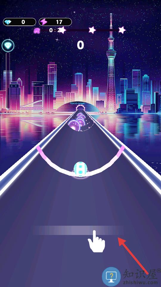 1、通过滑动屏幕控制小球跟随音乐节奏穿越障碍物。