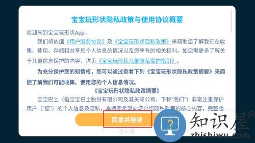 1、点击红框标注的同意并继续按钮,确认隐私政策开始使用应用。