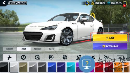 3、支付1200金币或看广告,为车辆选择金属漆涂装。