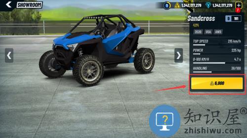 1、点击红框标注的6000金币按钮,购买这辆越野车。