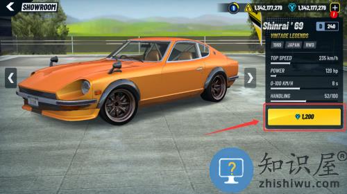 1、点击红框标注的1200钻石按钮,购买复古跑车。