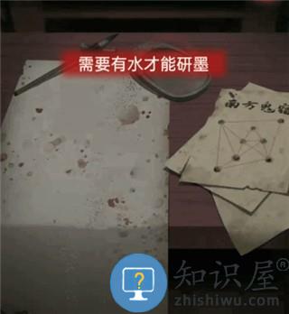 24、接着我们来到得到毛笔的桌上点击最下面的盒子,将两个小饰品一起放入进去,得到一把没有齿的钥匙。