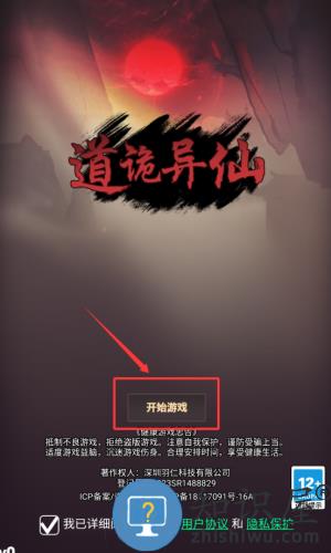 1、阅读协议后点击红框标注的开始游戏按钮。