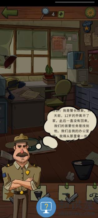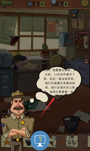 3、与警长对话后,根据红框箭头提示寻找办公室物品。