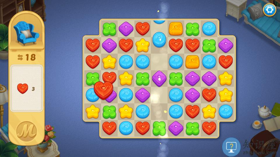 在左边可查看关卡需要消除的目标,当然任何颜色的抱枕都可以被消除。