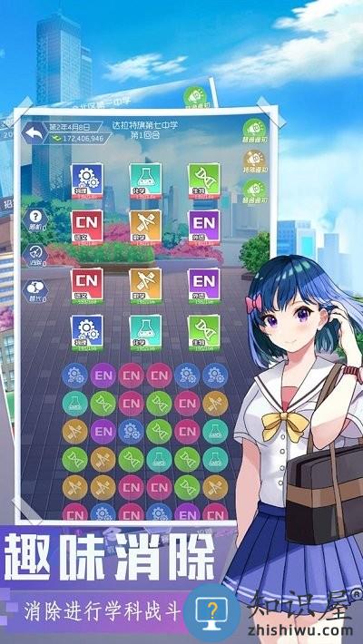 2、本游戏中所有城市和学校按字母顺序排列,完成校园生活模拟;