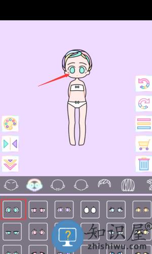 3、箭头指向蓝绿色眼睛,选择该装饰样式。