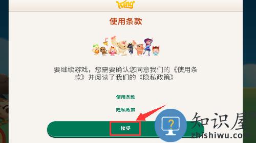 1、点击使用条款里的接受并进入。