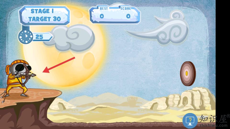 1、通过滑动屏幕调整射击角度与力度,松开手指发射箭矢。