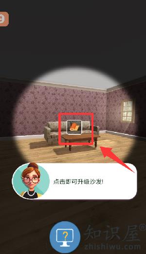 3、点击红色框框里的沙发并进行升级。
