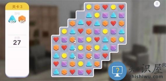 4、在买家具的时候没有钱怎么办,我们先来做做任务赚钱,根据目标来进行消除,没过一关则可以获得奖励。