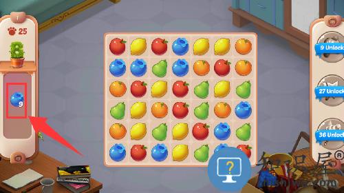 1、这关的目标是消灭9个蓝莓就可以通关了。