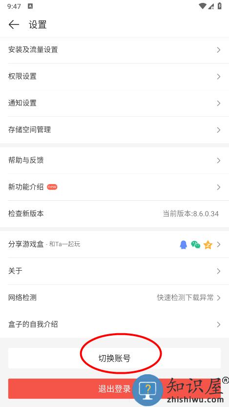 设置界面,下拉到最下面,点击切换账号;