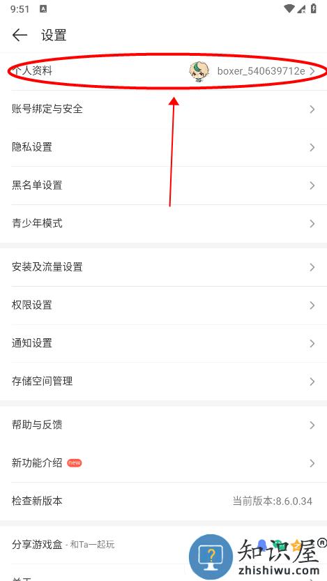 选择个人资料;