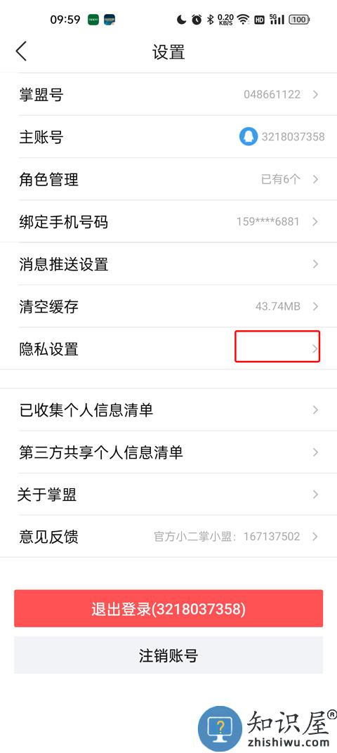 3、在面板中间的位置找到隐私设置端口点击进入隐私设置;