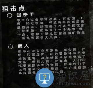 剧情一:狙击手,有两个士兵,一个拿狙击枪,一个拿步枪,第一次去的时候地下室不能下去,要等第二次去的时候带上一个锯子,右边三楼有一个上锁的柜子。大量的电子元件与药品,还有食物,物资比较丰富。