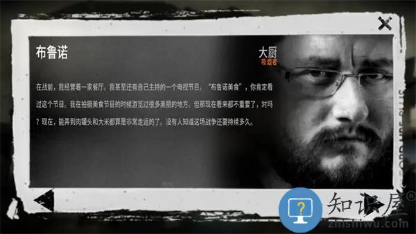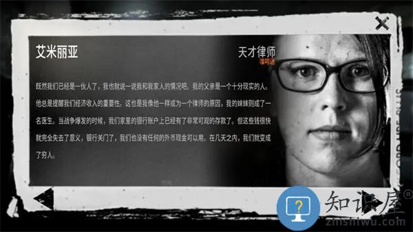 住着饥饿的画家,去的时候给他带个生肉就能够他活到战争结束,然后他会带你去地下室获得两个钻石和一瓶酒精,并且全家满足。一个锁,一个栅栏,大量材料,无食物,有电子元件与零件。