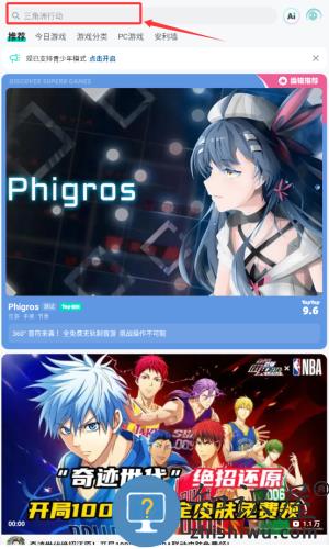 1、在顶部搜索框输入三角洲行动,点击搜索按钮。