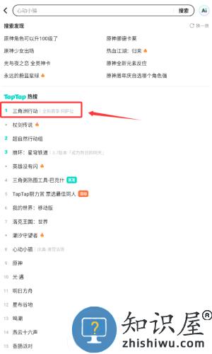2、在热搜榜点击红框箭头指向的三角洲行动词条。