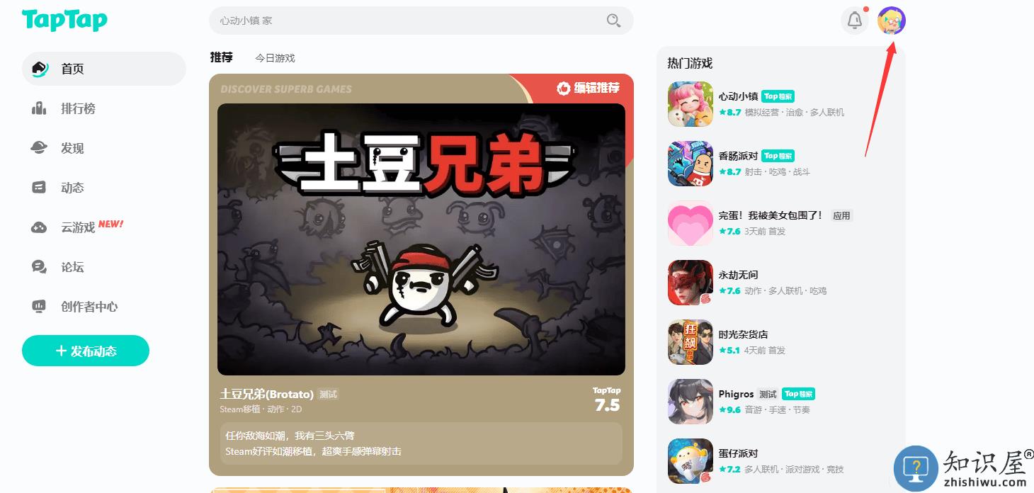 1、打开taptap网页版https://www.taptap.cn/后,登录要退款游戏的账号,点击右上角的头像
