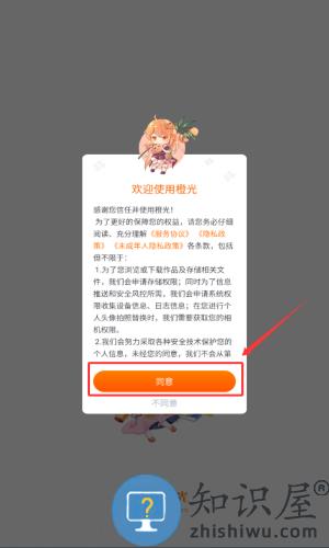 1、阅读用户协议后,点击红框标注的橙色同意按钮继续。