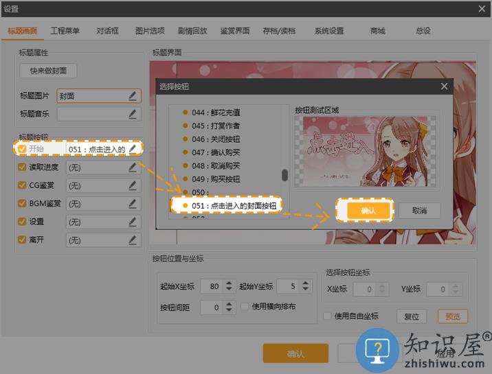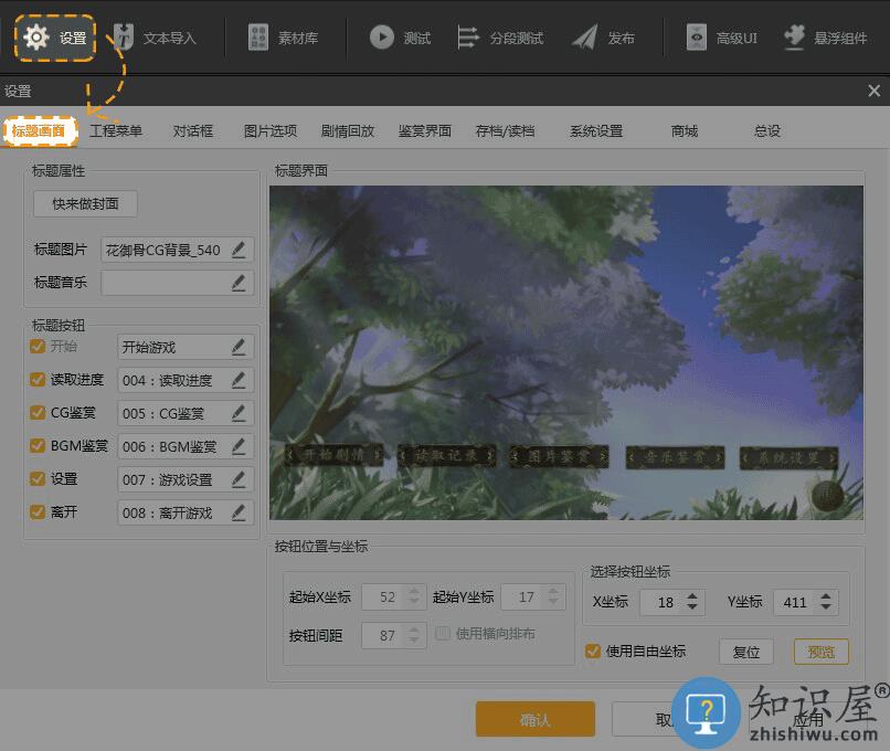 教程步骤打开2.0版橙光制作工具。在工具中设置“点击进入的封面按钮”的图片选项(图片选项如何制作可搜索相关教程)。点击“设置”-“标题画面”。