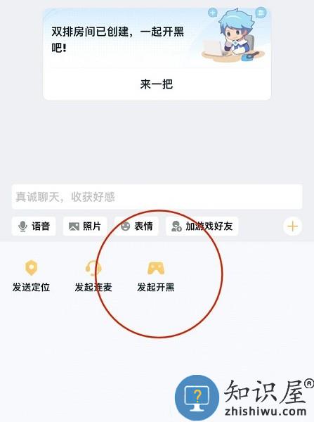 3、打开聊天栏,向对方发起开黑链接