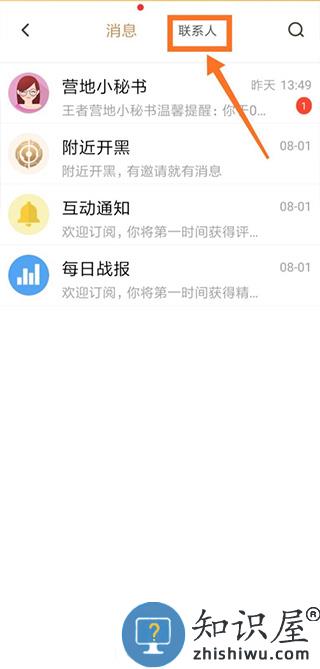 3、然后点击箭头处的联系人按钮。