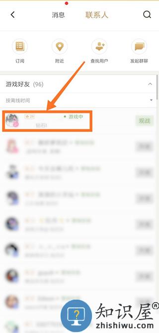 4、找到要查看战绩的好友,此处以箭头处好友为例。