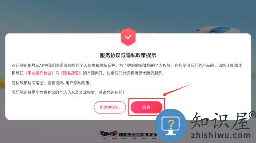 1、阅读隐私政策后,点击红框标注的粉色同意按钮。