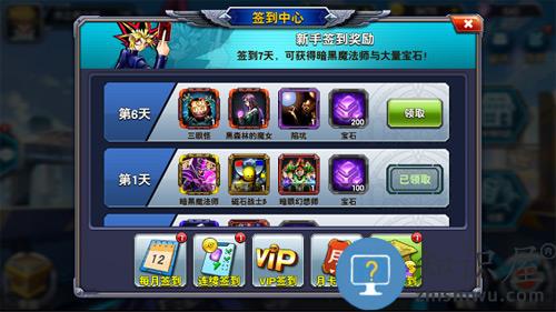 领取月签到奖励。月签到中包含各类资源,金币与宝石也能够随着签到日期的进展而获得更多。VIP等级的提升对部分签到奖励会有影响,在指定的时间,达到某个VIP等级可以领到双倍的奖励。