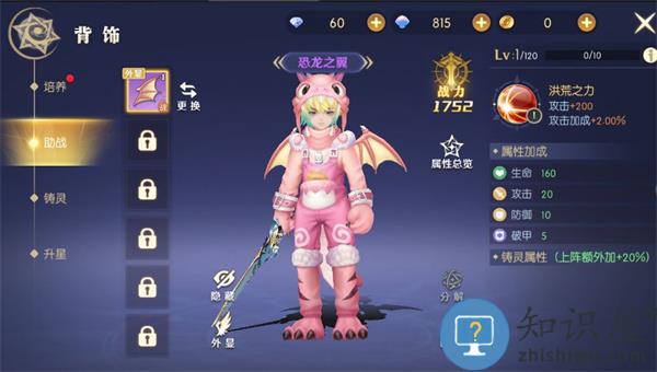 6、最后是外观、背饰等其他方面,这些方面因为比较氪金,所以平民玩家可以不过多追求,但是在土豪玩家眼中却是提升战力很重要的方式。背饰可以通过不断地激活来获得属性加成。外观分为坐骑,时装,头饰,只要获得对应时装就能解锁相应属性,即使不穿戴也同样能享受到加成。
