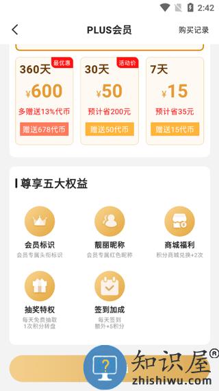 会员专属头衔标识、会员专属红色昵称、积分商城兑换加两次、每天免费抽取一次积分转盘、每日签到额外加5积分。