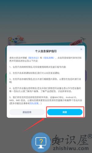 1、阅读个人信息保护指引后,点击红框标注的蓝色同意按钮。