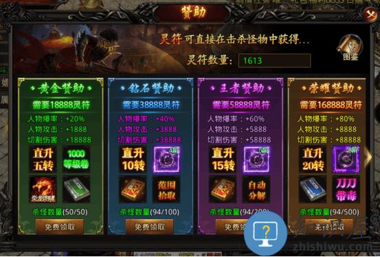 3、杀任意怪物达到条件,领取白嫖赞助,获得对应等级直升券