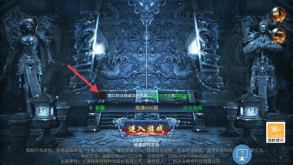 1、勾选同意用户协议点击进入游戏。