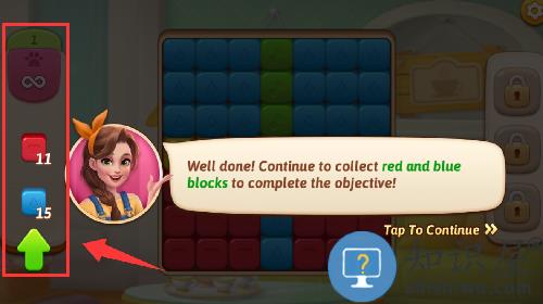 3、这关的任务目标是消灭11个红色方块还有15个蓝色方块。