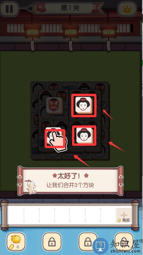3、点击3个同样的图型的方块就可以消灭。