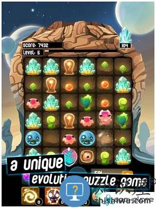 3.没有设计关卡模式,只有无尽的消除获取高分,游戏并不同于以往的三消游戏,它没有时间限制,而是用水晶矿石限制行动次数。