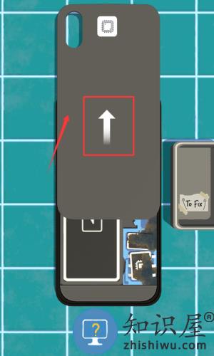 1、点根据红框箭头提示,向上滑动手机背盖准备拆解。