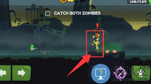 1、移动角色到箭头哪里然后点击物品用这个来诱惑僵尸出来。