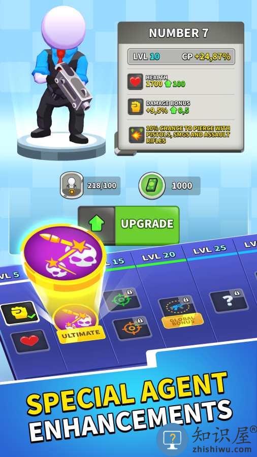 升级装备以变得更强大,寻找最稀有的枪支,成为最终的特工。