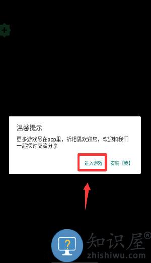 1、点击温馨提示里的进入游戏并继续。
