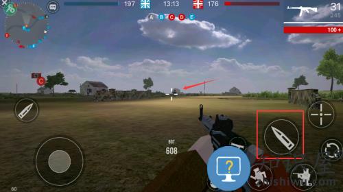 2、点击红框箭头指向的瞄准图标开镜射击。
