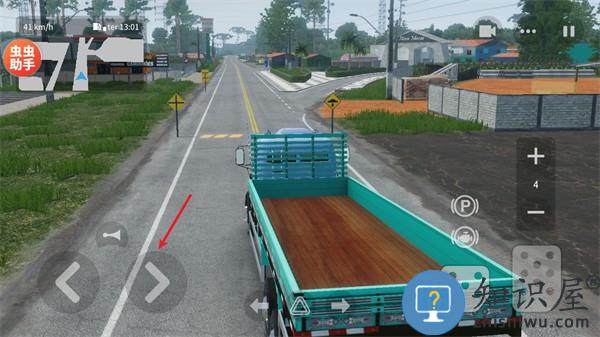 4、左侧的方向键可以控制卡车的转向,根据道路情况合理调整行驶方向。