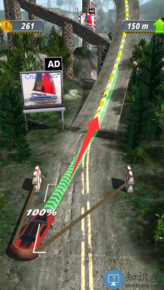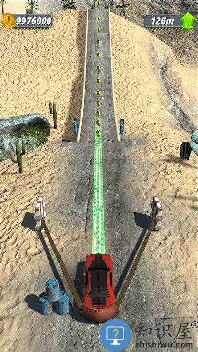 2、你能通过弹弓进行蓄力让自己的赛车拥有动力来向前驾驶,你必须能通过更多的赛道。