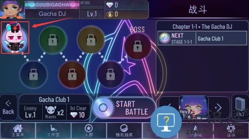 2、在战斗准备页点击红框标注的START按钮,开始第一章挑战。