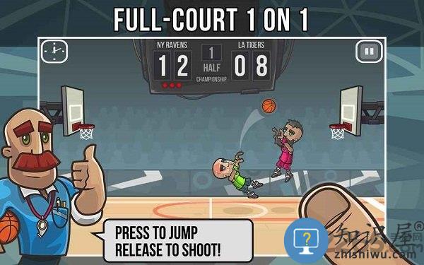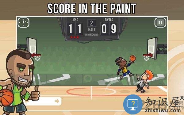 1、既然是1V1的攻守战,玩家也会遇到对手的攻击,我们同样可以在对手投篮瞬间跳起来进行封杀,如果时机得当,是有很大几率将球给盖下来的。值得一提的是,游戏中还有不少细节上的小花招可以帮助玩家更好地赢得胜利。例如轻点右侧即可放开手指,主角就会做出虚晃一枪的假动作,很有可能骗过对手让对手先行跳跃,错过防守良机。