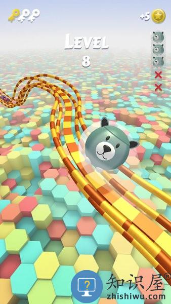 3、收集轨道上的金色音符可增强小球体积与移动速度。